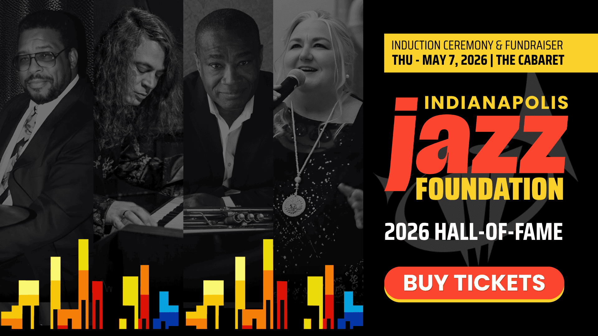 The Indianapolis Jazz Foundation invites you to an unforgettable evening of music and tribute. On Thursday, May 7th, we honor the 2026 Hall-of-Fame inductees with a gala featuring the Indianapolis Jazz Collective, a champagne welcome, and a live auction. Half of every ticket purchase goes directly toward funding our yearly programming and student scholarships.