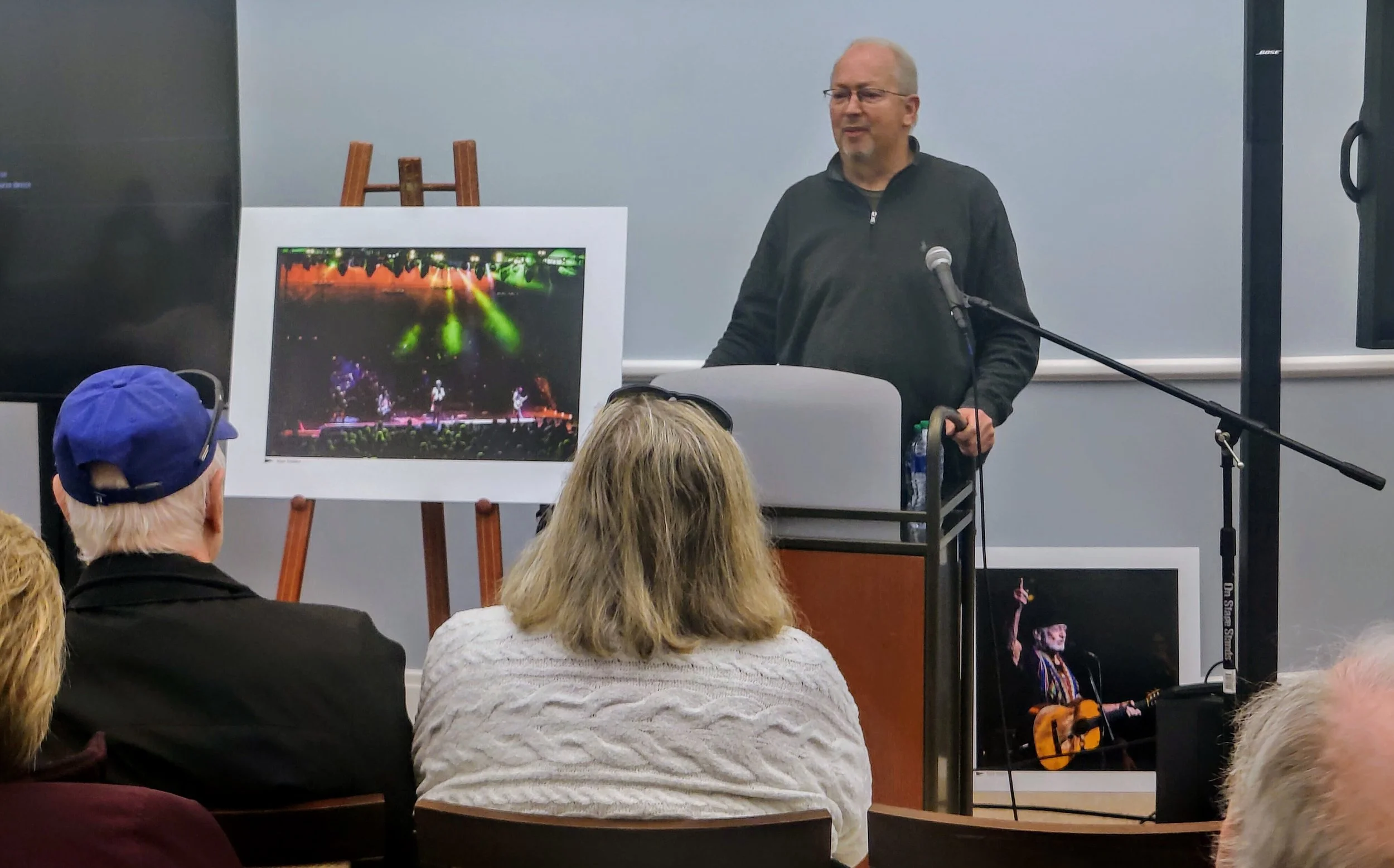 “ Mark Sheldon’s event today at The Center for the Performing Arts in Carmel called, No Room For Squares. Mark talked about his photography career and his early beginnings and his approach to shooting musical artists over the years. Great info and insight into his process. Great turnout. My photo shoot from the back row. (Hey Mark, don't shoot the guy with the cellphone camera!)